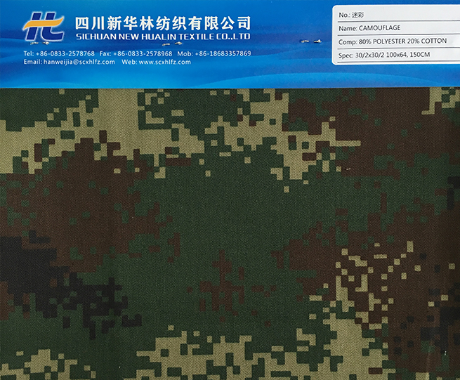 > 涤棉迷彩印花面料 T/C 80/20 30/2x30/2 100x64